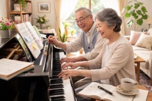 「60歳からの脳トレピアノレッスン」は、シニア世代の方に、ゆっくり、楽しく、わかりやすくピアノを学べるコースです。